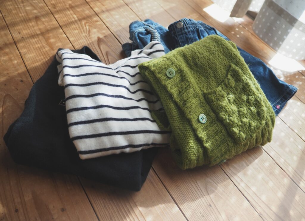 子供は成長が早く、ワンシーズンでサイズアウトしてしまうことも少なくありません。 しまう前には一度お子様に試着してもらい、次の季節にも着られそうか確認しましょう。小さくなった服は、お下がりにしたり、フリマアプリで売ったり、寄付したりするなど、早めに仕分けるのがおすすめです。